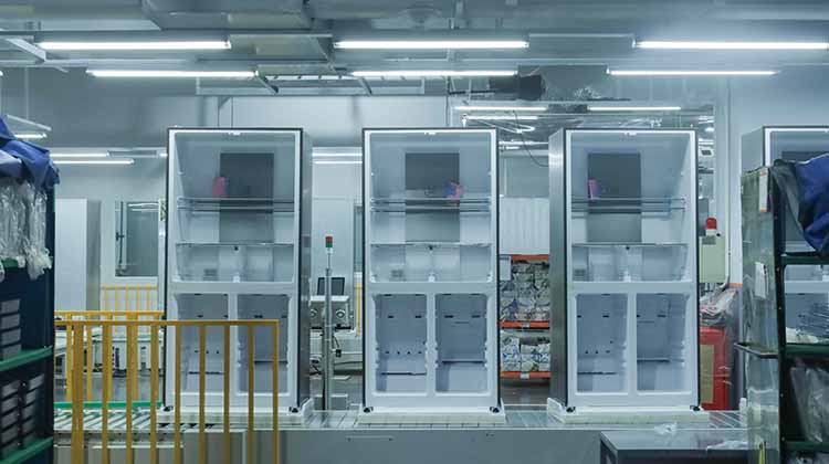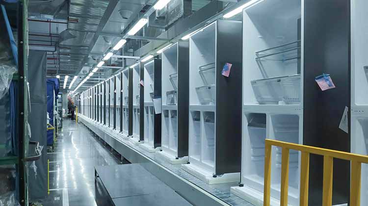 The cabinet assembly line conforms to the one-flow production mode of refrigerators, with line side auxiliary supporting automation equipment.