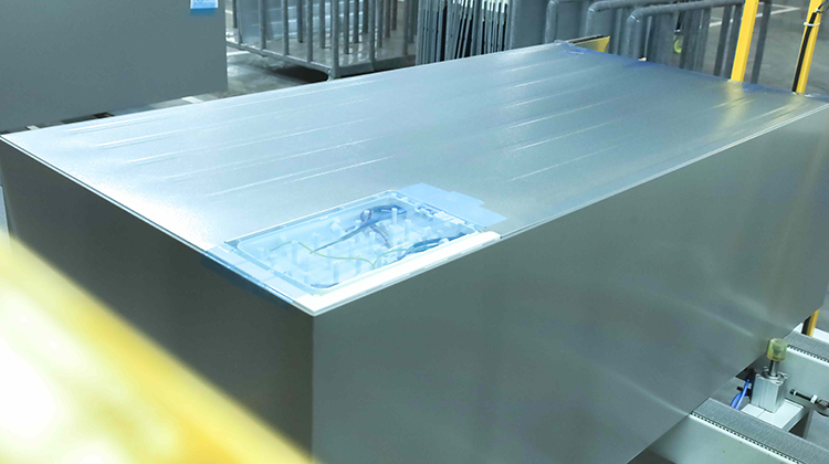 After accurately assembling the side panel, back panel, cabinets, and electric components inside the cabinet, the refrigerator “body” now is ready and will be transported to the foaming process.