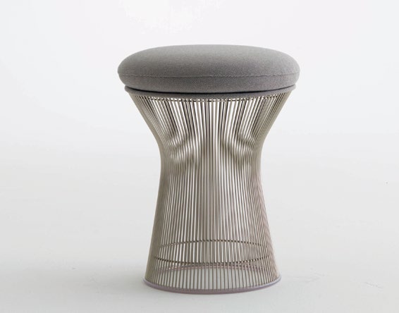 Designed by American architect and designer Warren Platner in 1966, this stool is part of the eponymic collection for Knoll, which represents an attempt to infuse modernism into the “decorative, gentle, and graceful forms that appeared in the Louis XV style.” Platner welded hundreds of curved steel bars onto circular frames, which served both as a support and decoration, creating what is now considered an icon of modern era design