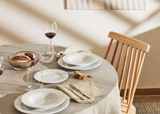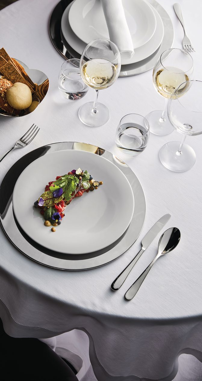 This democratisation and rejection of perfection in favour of a growing appreciation for natural and spontaneous aesthetics translates, in terms of mise en place, into a reduction in the number of elements, which have also shrunk in size The only exception to this simplification is the glasses, a “counter- trend” linked to the growing wine culture and therefore to the desire of enjoying it using the most appropriate objects.
