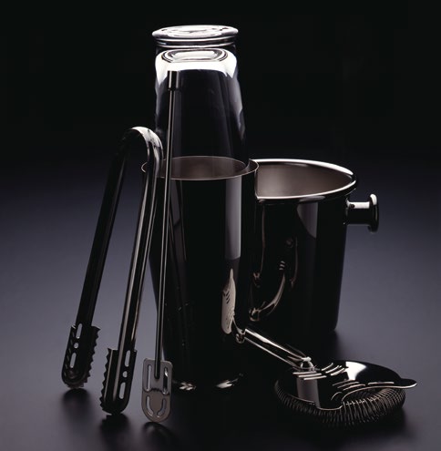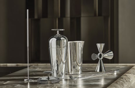 On the left, one of the first Alessi cocktail sets by Ettore Sottsass bar2, on the right, the recent Tending Box.