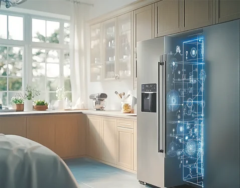 These models independently regulate temperature and energy consumption. The most sophisticated refrigerators can recognise the food types, suggest recipes, and alert you when products are nearing their expiration date or running low. In some cases, they can even order groceries online. With large integrated screens encased in the doors, they transform into connected hubs, offering entertainment and social networking opportunities. Connected ovens and refrigerators will “collaborate”: the refrigerator, recognising the available ingredients, will communicate with the oven, which will suggest a range of possible recipes based on what’s in stock.