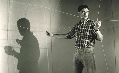 Gianni Colombo interacts with the installation, revealing how its elements respond and relate to one another.
