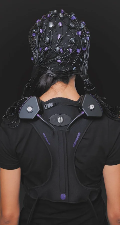 Spectrum C23 fNIRS system for Cortivision – headset for fNIRS Functional Near-Infrared Spectroscopy, a non-invasive neuroimaging technology that measures changes in oxygenation levels in the brain. Design of the optodes, breakoutboards and of the harness making the technology wearable and comfortable for full portability and comfort of use both in a stationary setup or in non-laboratory conditions.