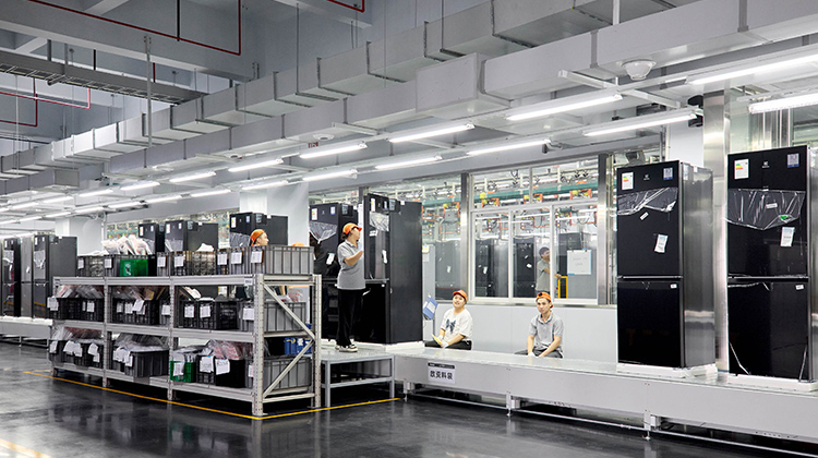 The temperature in the entire dynamic refrigeration testing room is stably controlled at a room temperature of 26°C. This room also houses a dynamic refrigeration line, which is currently the longest in Homa, stretching 200 meters and featuring 160 testing stations. On our MES display, you can monitor various pass rates in real-time, including the noise pass rate, refrigeration pass rate, and leakage pass rate, ensuring continuous quality control throughout the process.