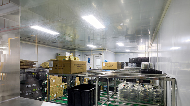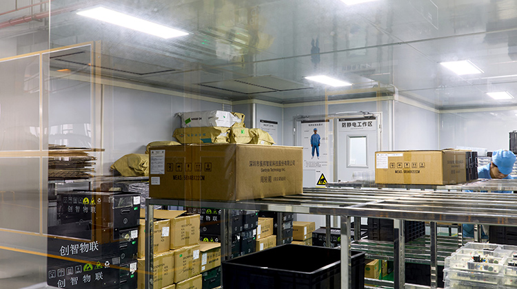 This is our ESD control room, where all the electrical components of our refrigerators are assembled. As seen through the glass window, we have an ion fan accelerator in place, and all our employees wear standard ESD clothing and wristbands to protect the electronic components from static interference.