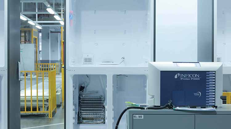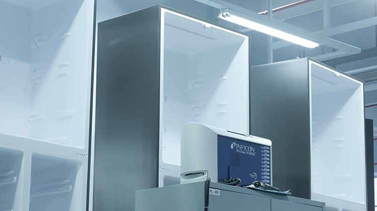 This process is specifically organised at the end of the assembly line for circuits and evaporators, to carefully inspect the cabinet welding points performance.