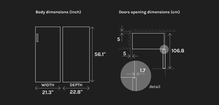 | Product Dimension WXDXH (mm) | 540X568x1429(21.3’’x22.4’’x56.3’’) |