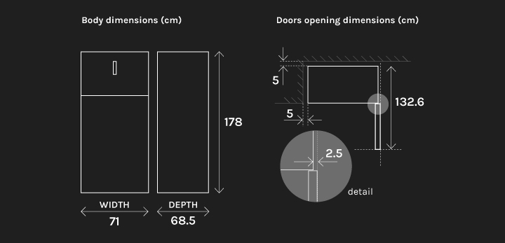 | Door Split (fridge /freezer) | 65 / 35 |