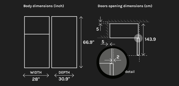 | Product Dimension WXDXH (inch) | 28″×30.9″×66.9″ |