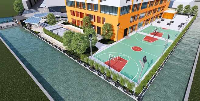 • The outside routes are carefully designed where vehicles and pedestrians are separated, to ensure safety and transport efficiency.